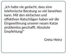 Ideal, um gezielte Fragen rund um das Verhalten Ihrer Katze zu klären und erste Ansätze für mögliche Lösungen zu besprechen.